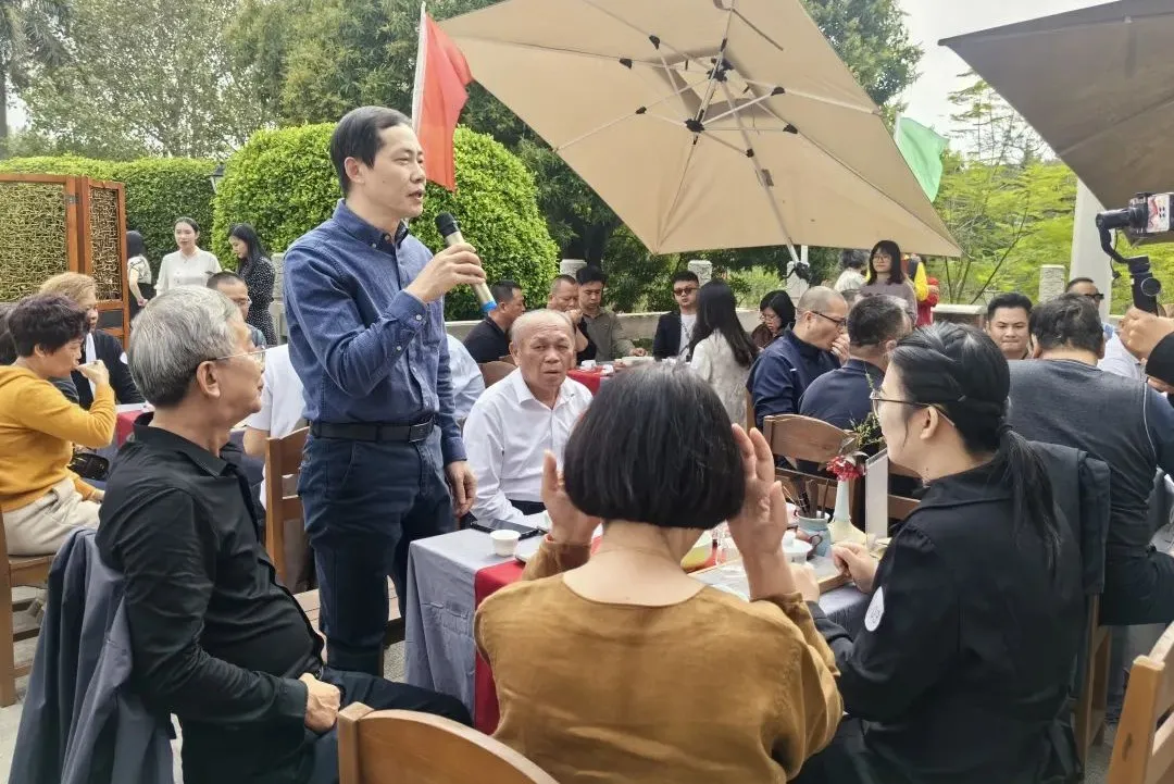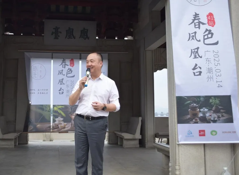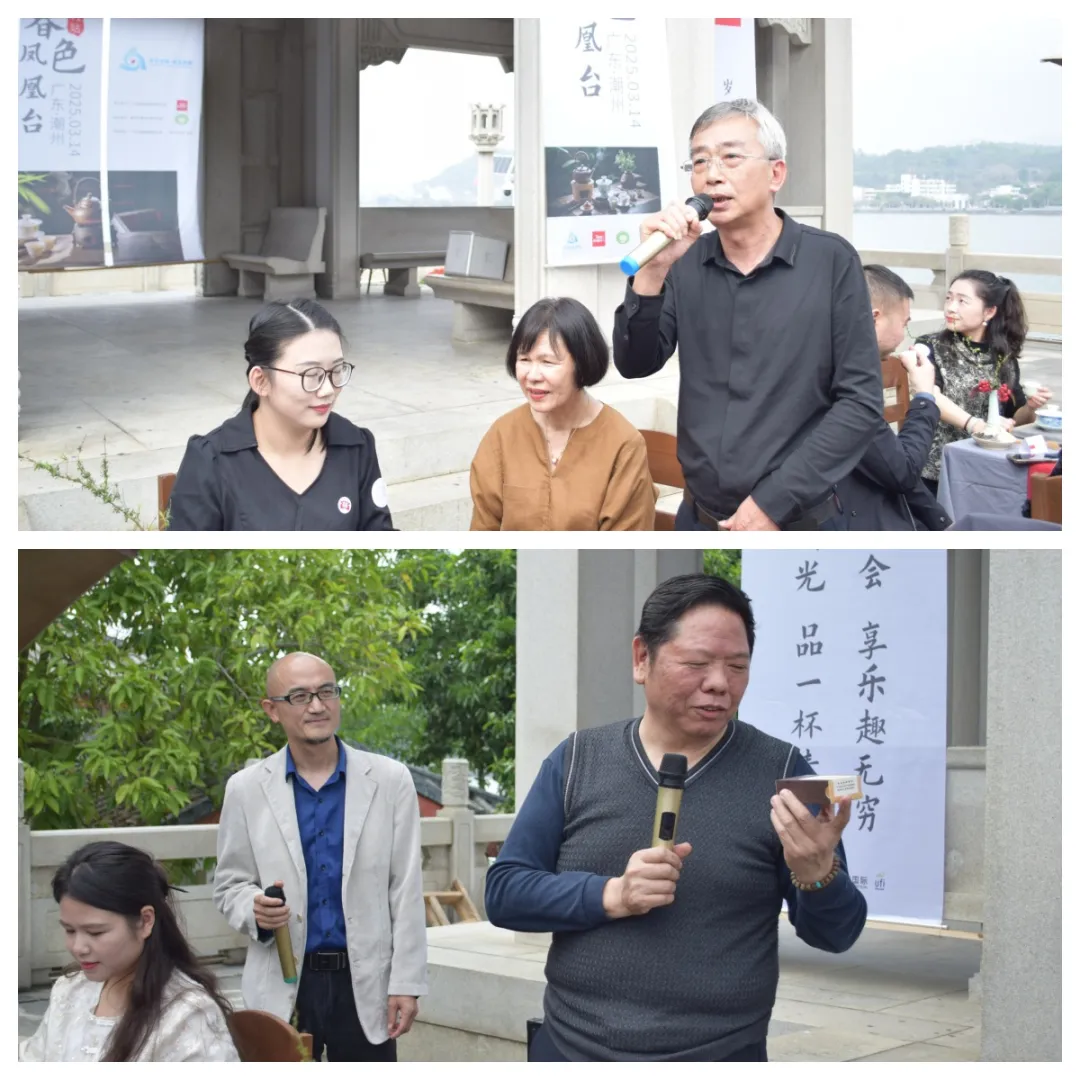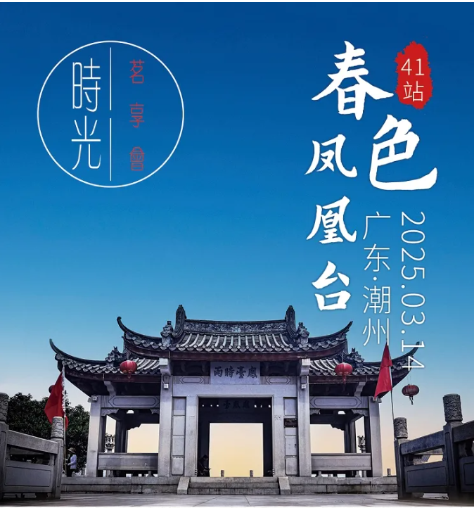 3月14日下午,在风景优美的古城潮州,美丽的凤凰洲凤凰台,春风吹拂韩江,微波荡漾。春节后第一站,也是第41站『时光·茗享会』在这里举行。潮州市商务局副局长李翊鹏,原中共潮州市农业农村局机关委员会副书记、委员翁鹏程,潮州市社会科学界联合会党组成员、副主席章碧武,潮州市潮安区茶叶协会创会会长林伟周,国家级非物质文化遗产潮州工夫茶茶艺省级非遗传承人叶汉钟,中国工艺美术行业艺术大师张瑞端,中国刺绣艺术大师、非遗潮绣省级代表性传承人、高级工艺美术师李淑英,广东省书画家协会原副主席、斌园艺术馆馆长孙丹,广东省民间文艺家协会潮州工夫茶专委主任委员李佳鸿,潮州工夫茶文化研究会秘书长何静,潮州茶产业促进会秘书长谢卫歆,潮州市民间文艺家协会秘书长佘勋荣,揭阳市美术家协会主席许小雄,揭阳市民间文艺家协会秘书长吴锐亮,揭阳市揭东区工艺美术协会副会长吴育武,汕头市超市供应链协会党支部书记兼秘书长李文蓉,广东双隆制罐有限公司销售总监范鹏,茂名市供橘化橘红产业发展有限公司董事长梁超明,广州益武国际展览有限公司董事长胡卫红、董事总经理李广韬等70多位来自潮州,广州,汕头,揭阳,茂名等地嘉宾出席。